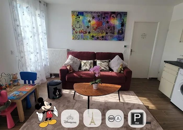Appartamento Cosy F2 Proche Disneyland Paris, di 45 m^2, situato a circa 2 km dalla Spiaggia dei Pirati, offre ai suoi ospiti Wi-Fi sia per affari che per piacere. La fermata dell'autobus più vicina, Les Marmousets, dista 250 metri, mentre il Castello della Bella Addormentata nel Bosco si trova a 2 km.